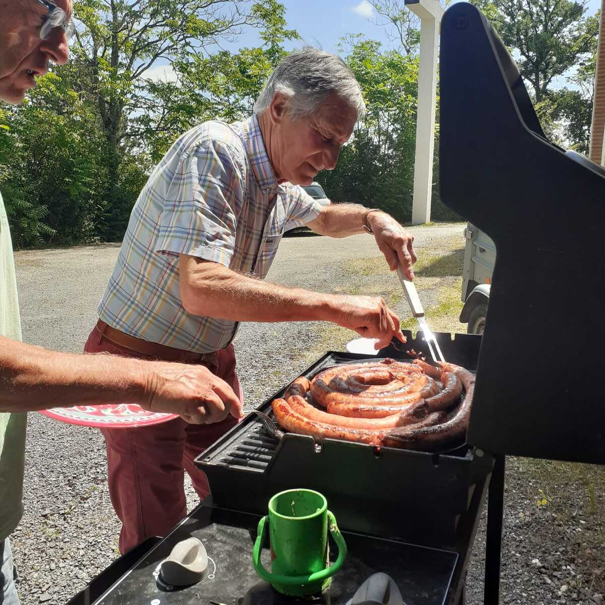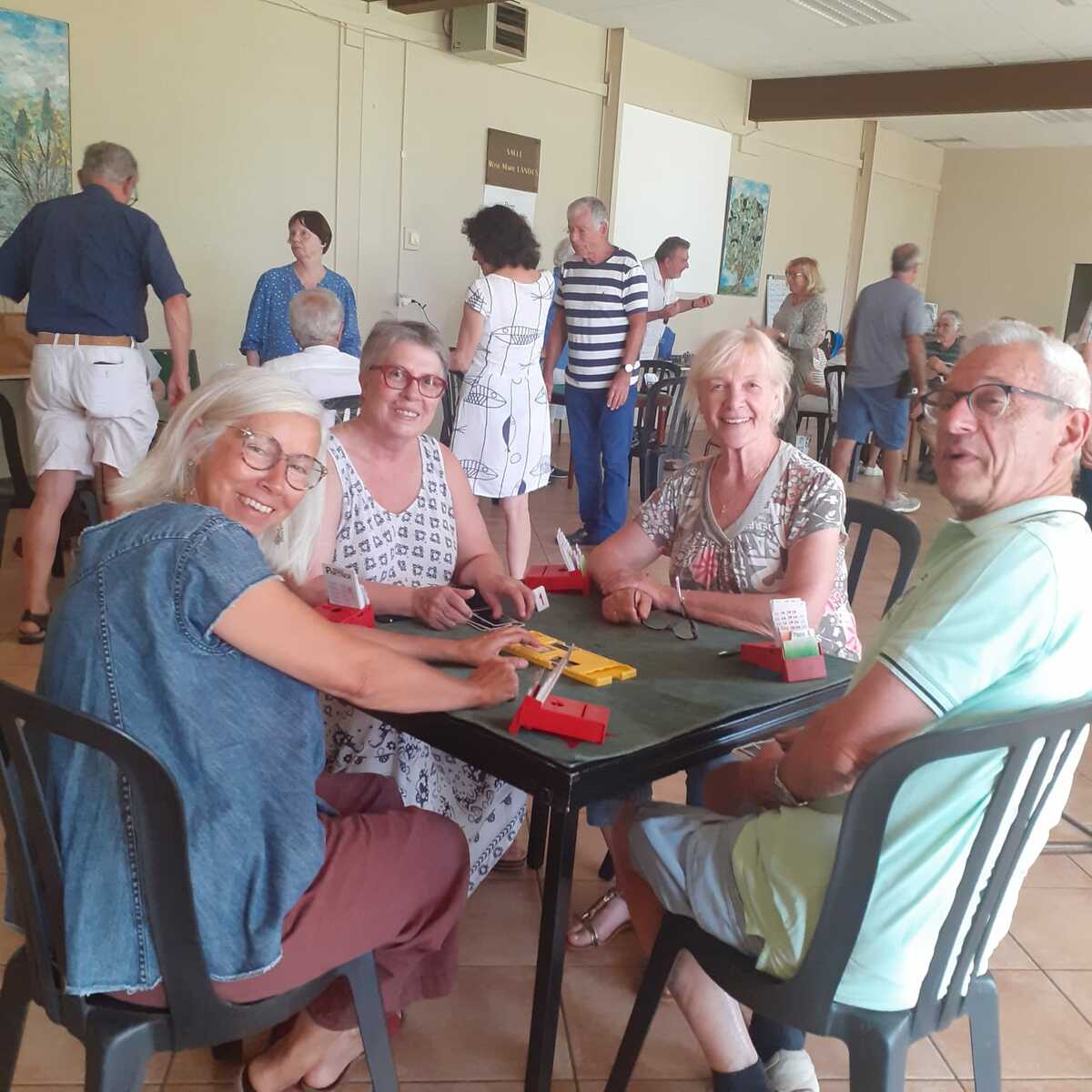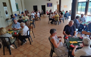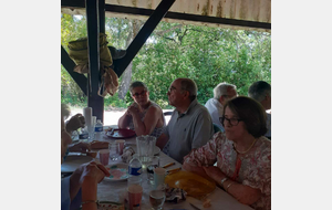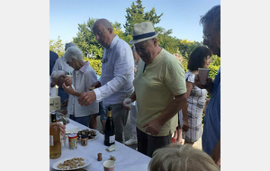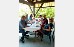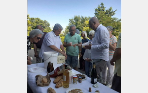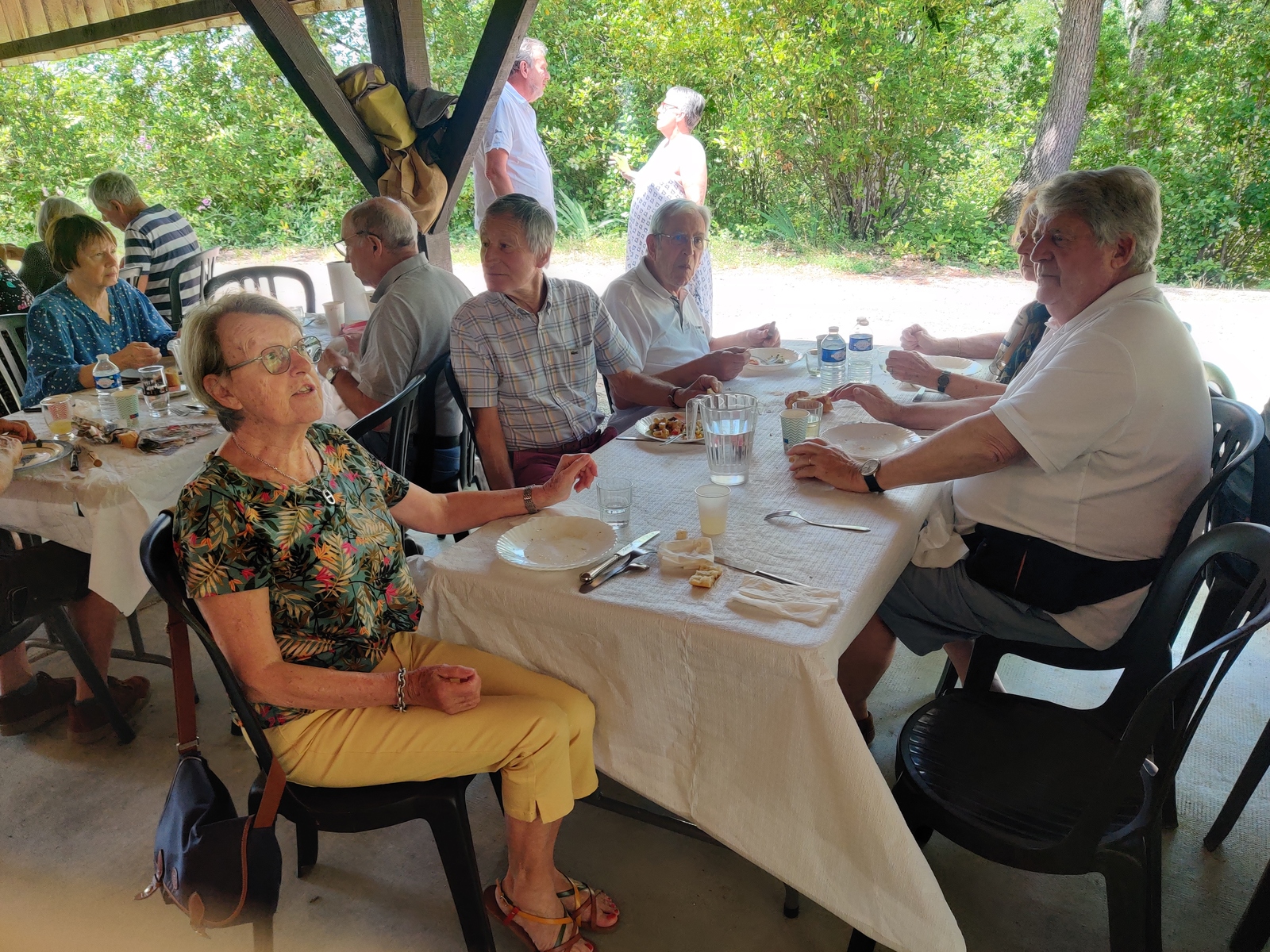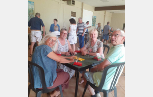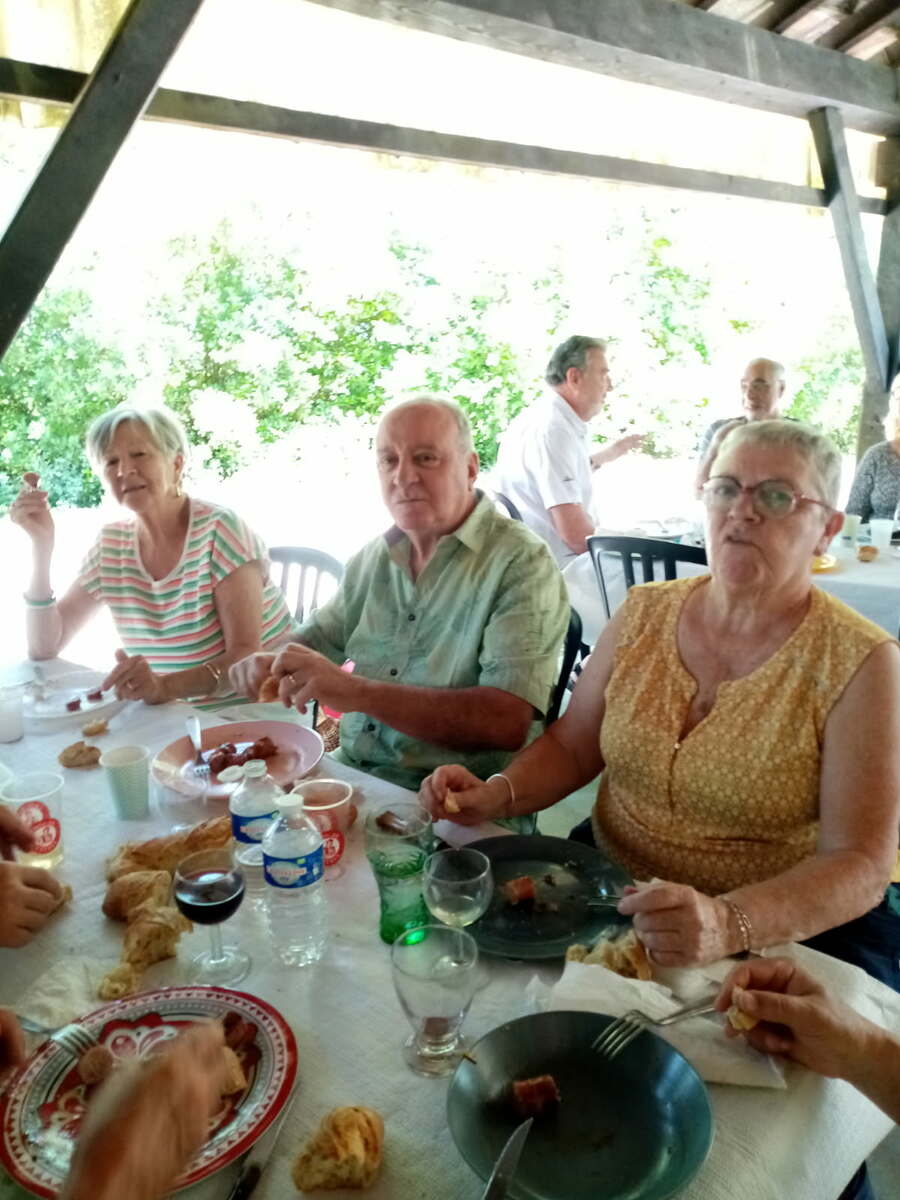 Début de la journée par une collation café et viennoiseries ,tournois de pétanque et de molky , apéritif avec succulentes moules à la plancha préparées par Jean Paul , arrosées d'une très ( trop ..) appréciée Sangria et suivi du repas saucisses à la plancha accompagnées de salades , desserts , concoctés par les participants à ce repas Tirage au sort pour notre tournoi de bridge et pour finir cette belle journée , le verre de l'Amitié bu dans la joie et le plaisir d'être ensemble pour finir cette journée de fête , encore sous un magnifique soleil