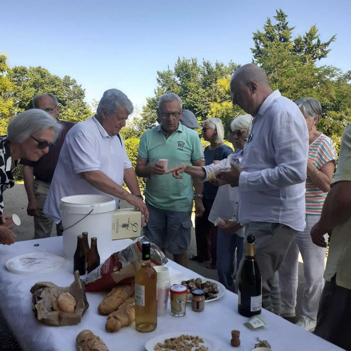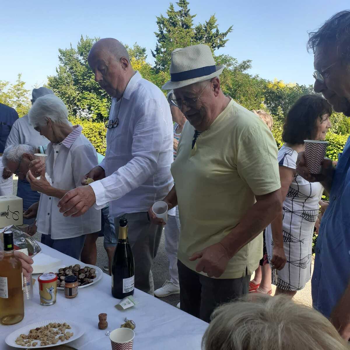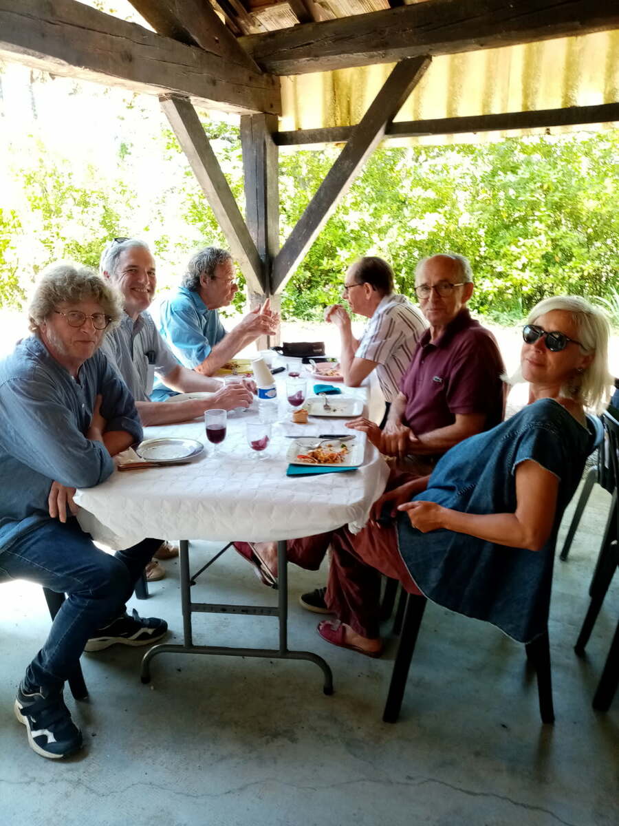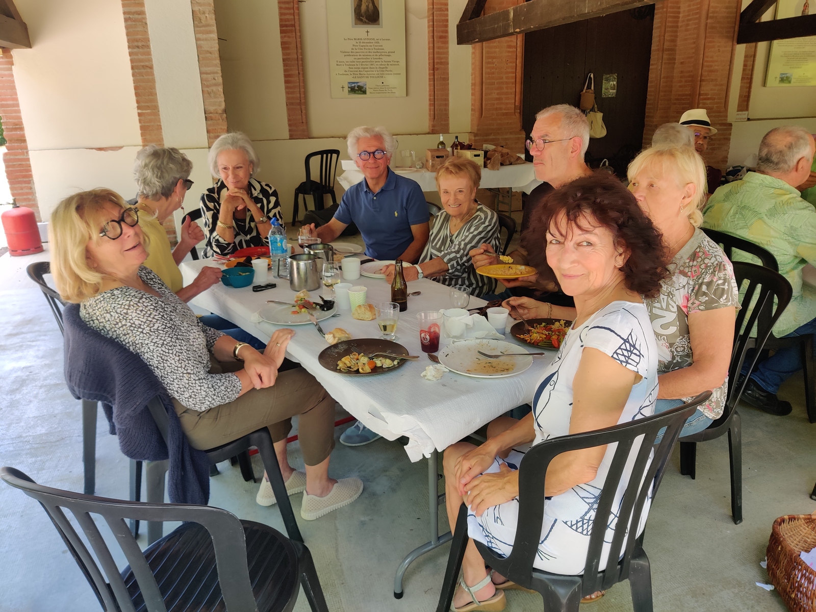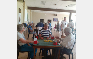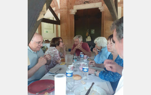 Début de la journée par une collation café et viennoiseries ,tournois de pétanque et de molky , apéritif avec succulentes moules à la plancha préparées par Jean Paul , arrosées d'une très ( trop ..) appréciée Sangria et suivi du repas saucisses à la plancha accompagnées de salades , desserts , concoctés par les participants à ce repas Tirage au sort pour notre tournoi de bridge et pour finir cette belle journée , le verre de l'Amitié bu dans la joie et le plaisir d'être ensemble pour finir cette journée de fête , encore sous un magnifique soleil