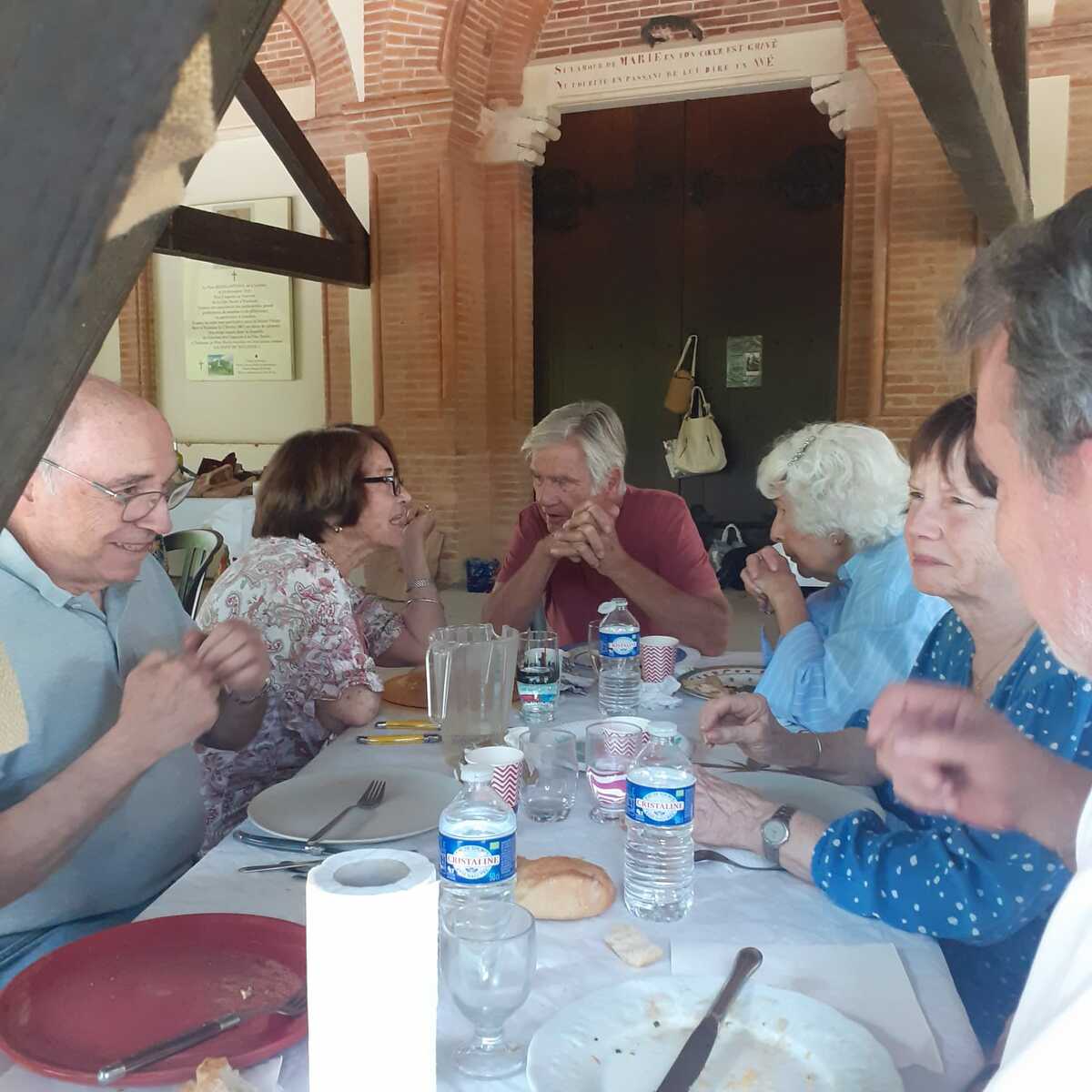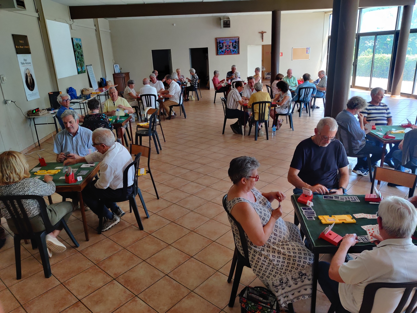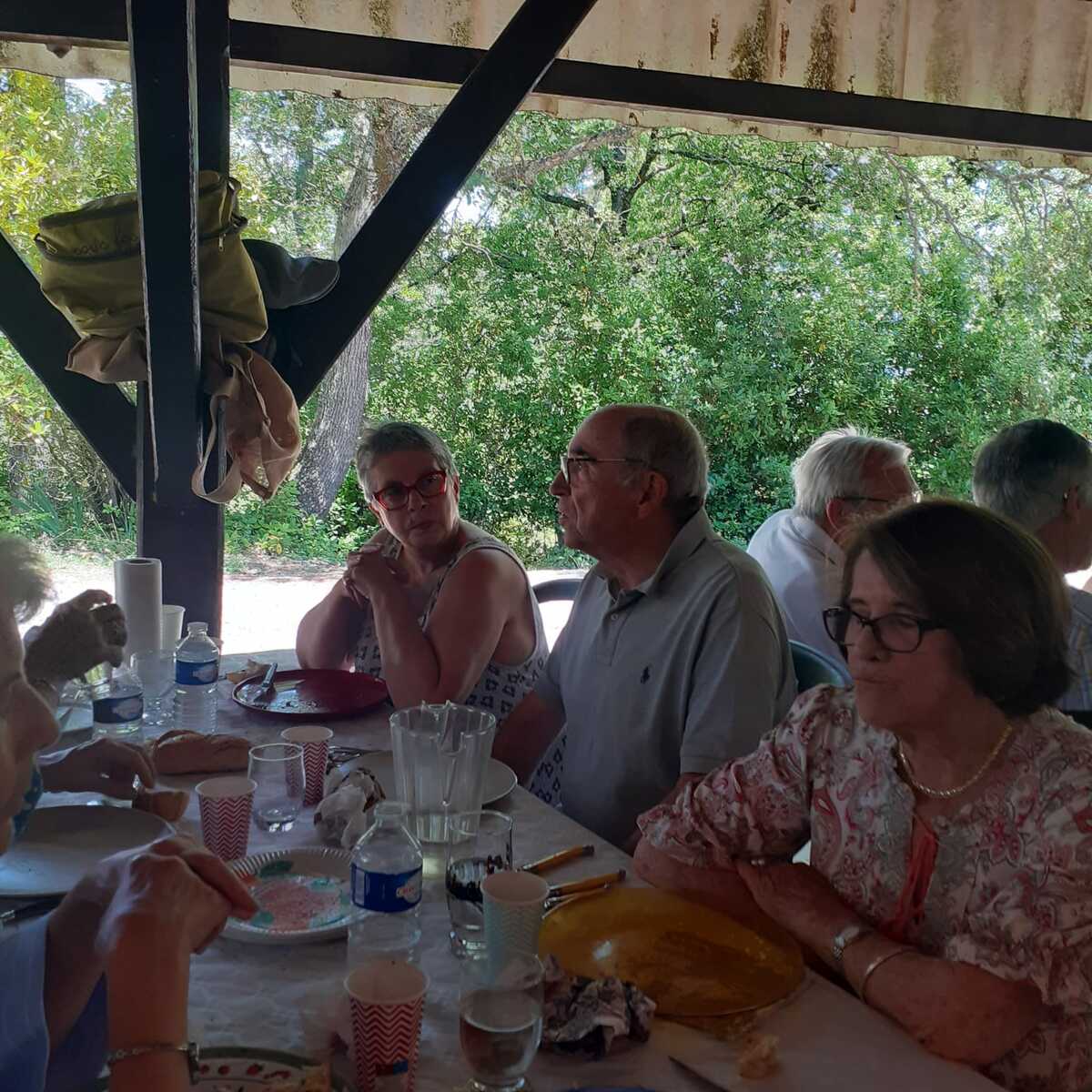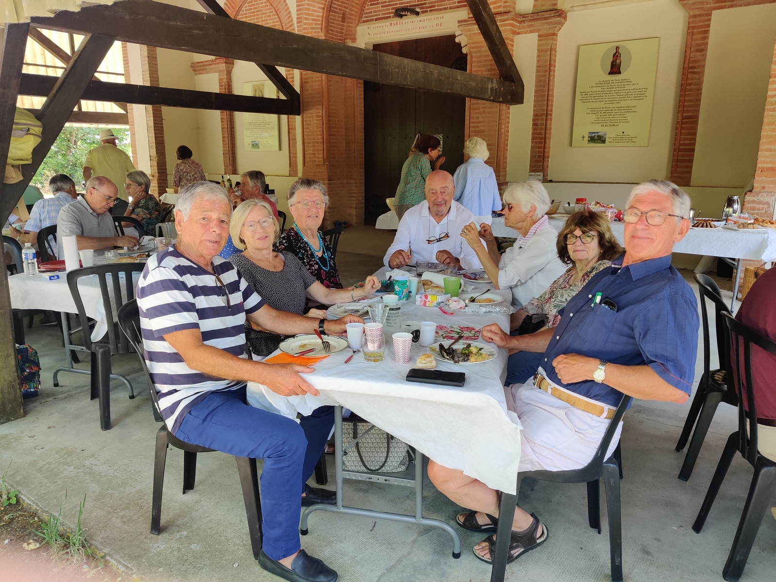 Début de la journée par une collation café et viennoiseries ,tournois de pétanque et de molky , apéritif avec succulentes moules à la plancha préparées par Jean Paul , arrosées d'une très ( trop ..) appréciée Sangria et suivi du repas saucisses à la plancha accompagnées de salades , desserts , concoctés par les participants à ce repas Tirage au sort pour notre tournoi de bridge et pour finir cette belle journée , le verre de l'Amitié bu dans la joie et le plaisir d'être ensemble pour finir cette journée de fête , encore sous un magnifique soleil